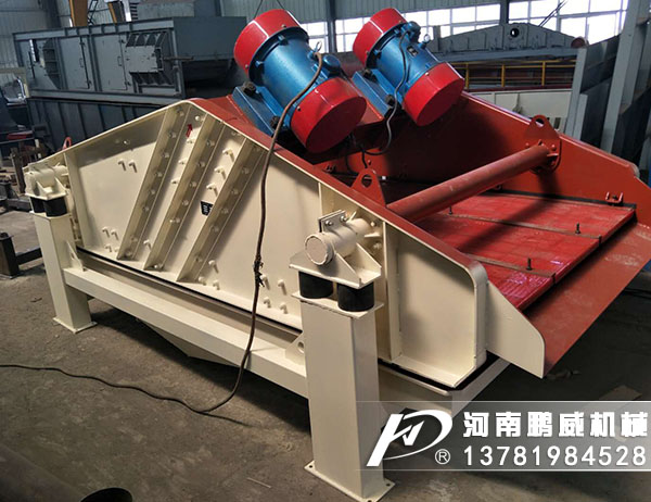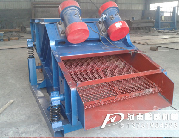 主要由篩箱、激振器、支承系統(tǒng)及電機組成。兩個互不聯(lián)系的振動器作同步反向運轉(zhuǎn),兩組偏心質(zhì)量產(chǎn)生的離心力沿振動方向的分力疊加,反向離心抵消,從而形成單一的沿振動方向的激振動,使篩箱做作往復(fù)直線運動。