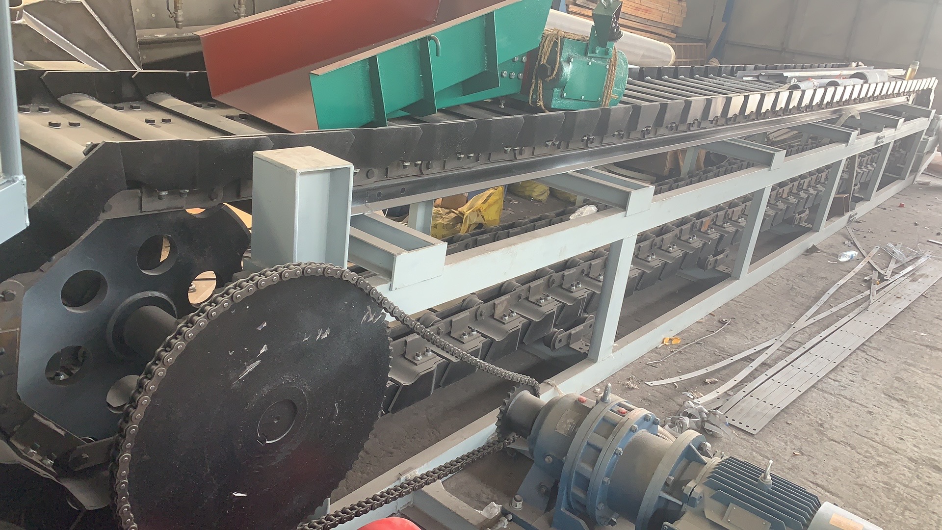 鏈板輸送機鏈條與鏈輪鏈式輸送機牽引鏈條一般為套筒滾子鏈或鍛鏈。輸送機規格超過630mm時,采用雙鏈,630mm以下,可采用單鏈。鏈條的參數主要是節距和破斷載荷。常用的鏈條節距為250和315根據鏈條實際所受的較大張力,再考慮一定的安全系數,選擇破斷載荷合適的鏈條。