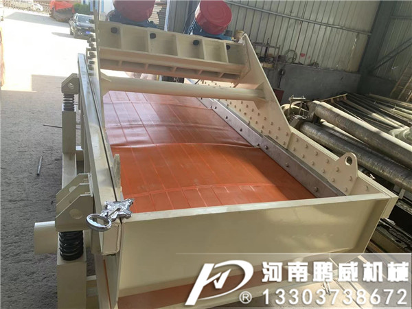 給礦器把礦漿均勻地灑在篩面上端。篩面上的物料由于連續(xù)受到高頻率小振幅的振動,在傾斜的篩面上做作連續(xù)的跳躍,使物料分散,細(xì)粒物料在調(diào)勻的過程中透過篩孔稱為篩下產(chǎn)品,而大于篩孔的物料在傾斜的篩面上作連續(xù)的向前跳躍,跳出篩網(wǎng)成為篩上產(chǎn)品。但是作用于不同物料時(shí),脫水篩的構(gòu)造還是有所不同的,比如水洗砂生產(chǎn)線上的砂石脫水篩和選礦廠常用的尾礦脫水篩就是不同的設(shè)備。高頻振動篩的振動器運(yùn)用了共振原理,雙質(zhì)體臨界共振狀態(tài)工作,所需驅(qū)動功率小,在啟動時(shí)無大的啟動電流,噪聲低。高頻振動篩篩框采用橡膠彈簧懸掛支撐,噪音低,功耗小,設(shè)備動負(fù)荷小,故對安裝基礎(chǔ)無特殊要求。高頻振動篩在篩體振動的同時(shí),篩片的篩條之間也產(chǎn)生相對的顫動,篩片縫隙不易堵。